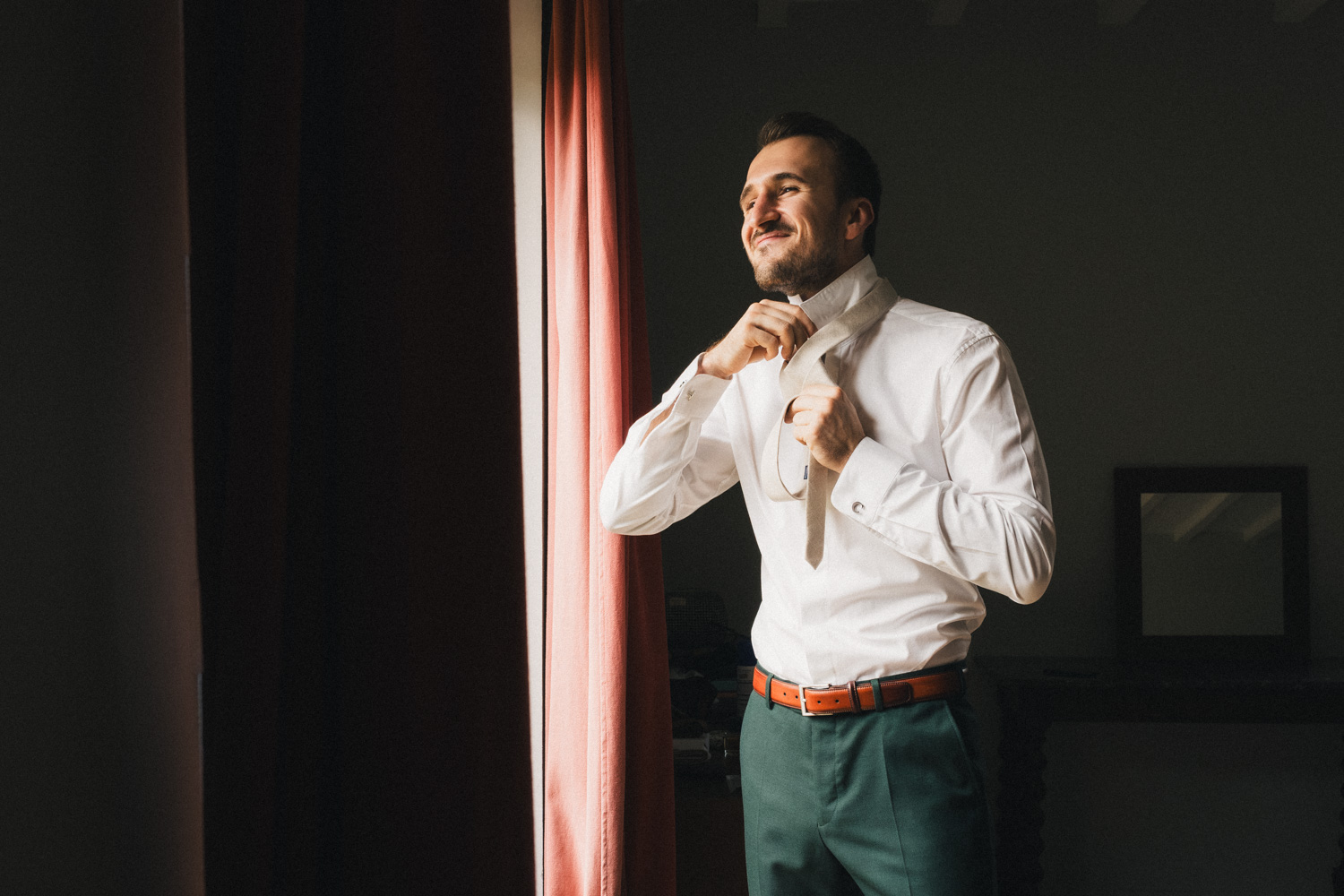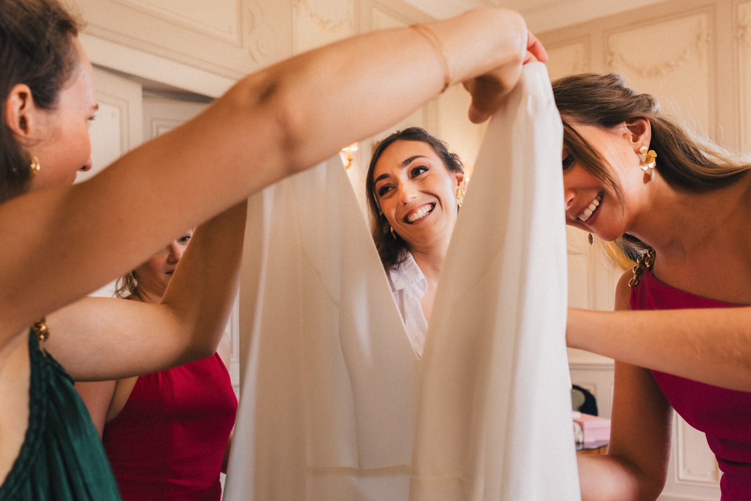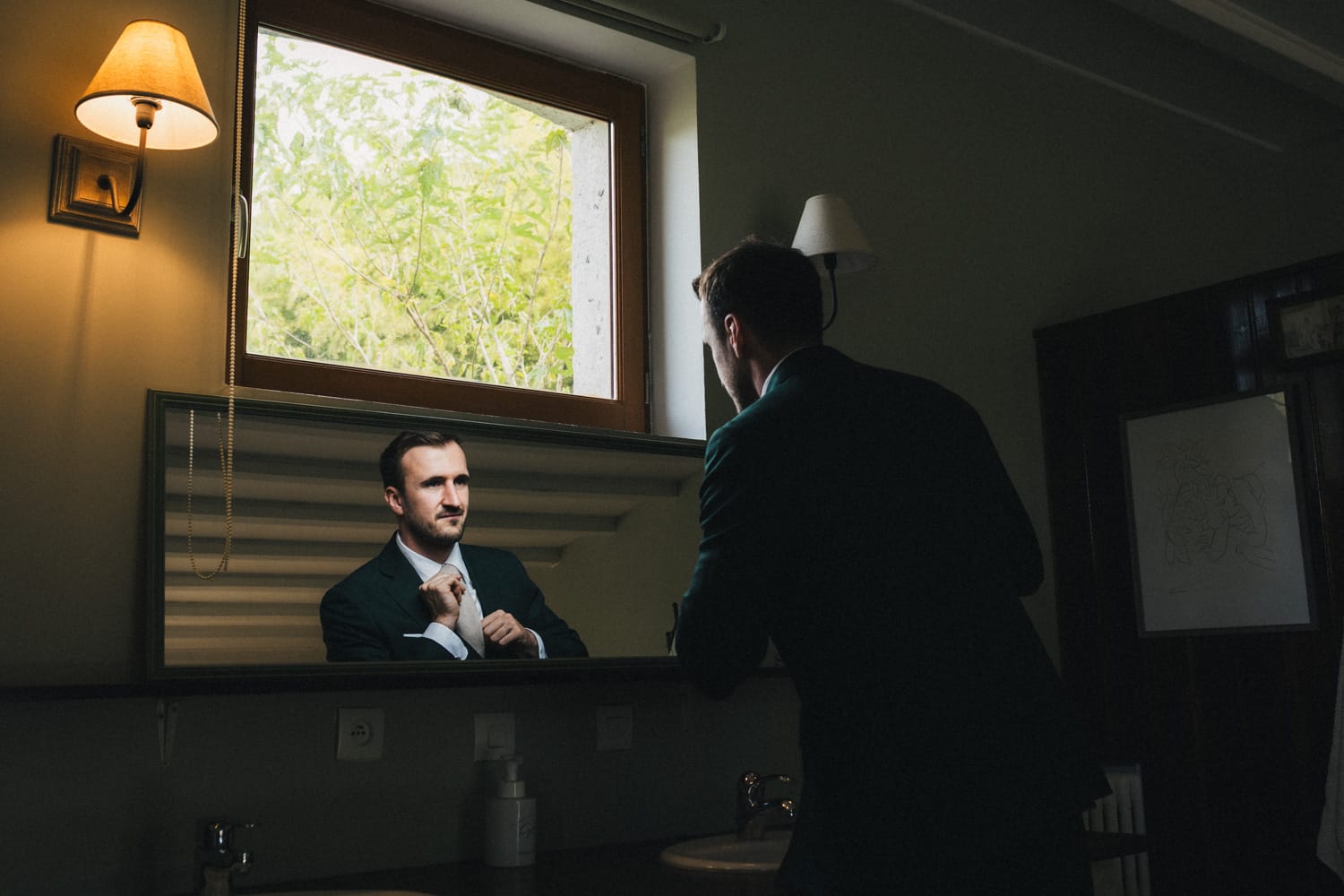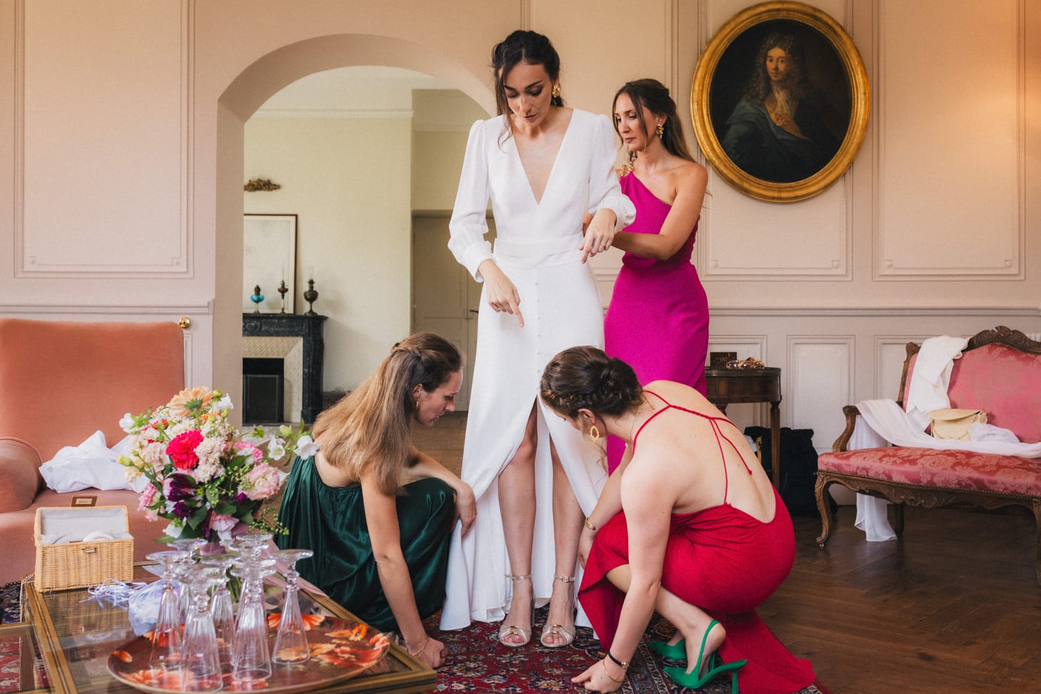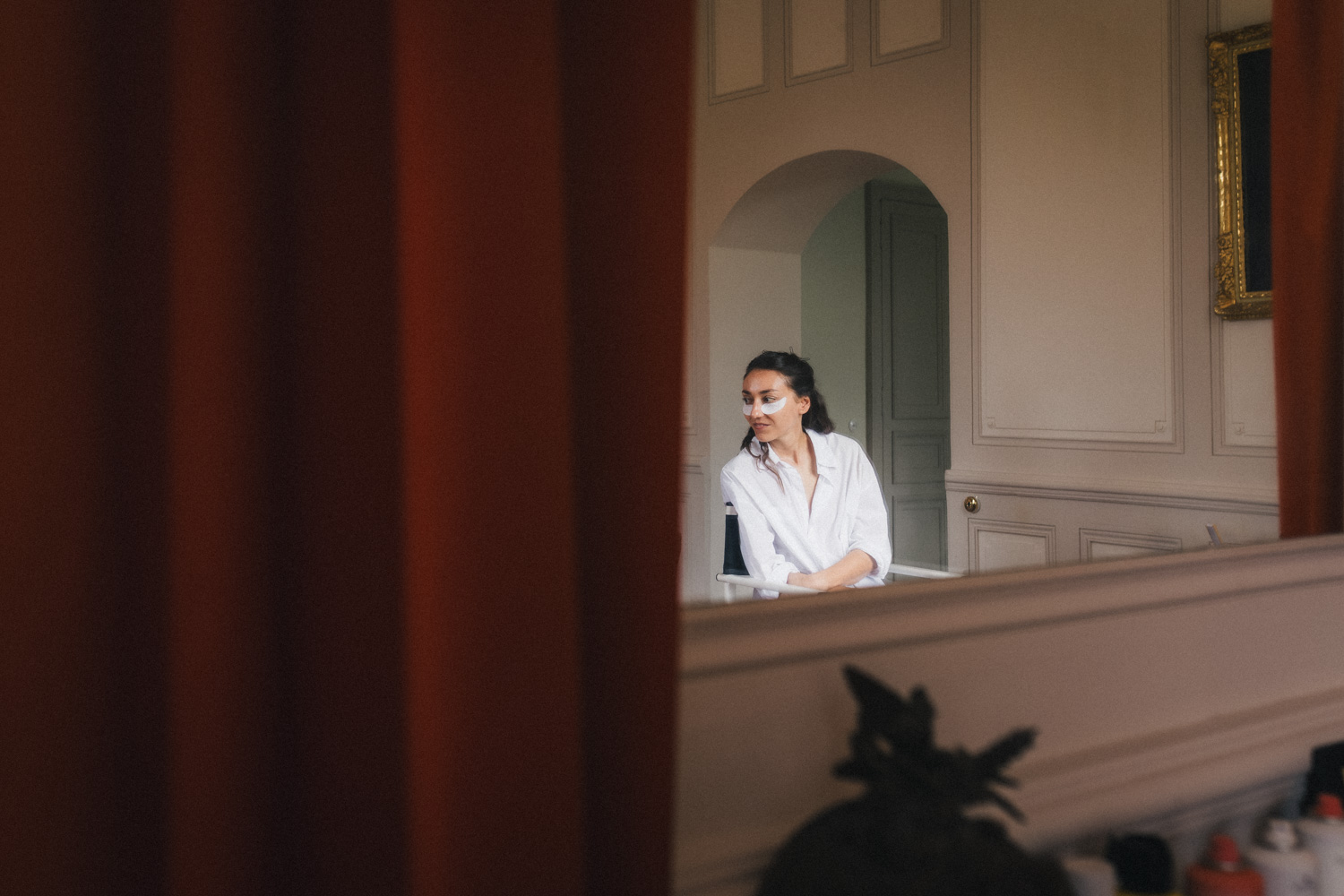 Je prends le temps de faire quelques photos des lieux, de faire du repérage et de discuter avec Coline et ses témoins avant de partir retrouver Julien pour ses préparatifs. Je retrouverai Coline plus tard pour l’enfilage de la robe.