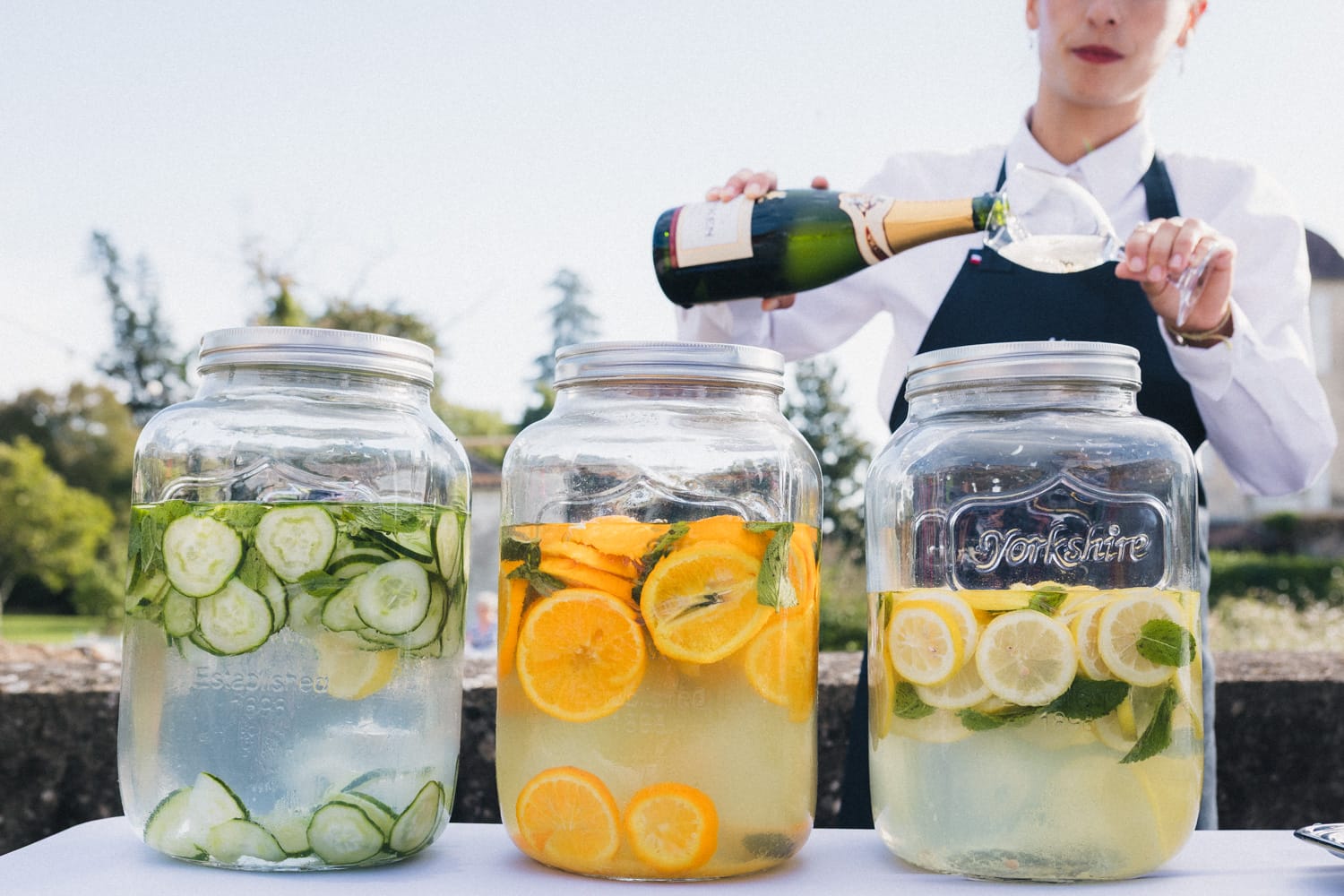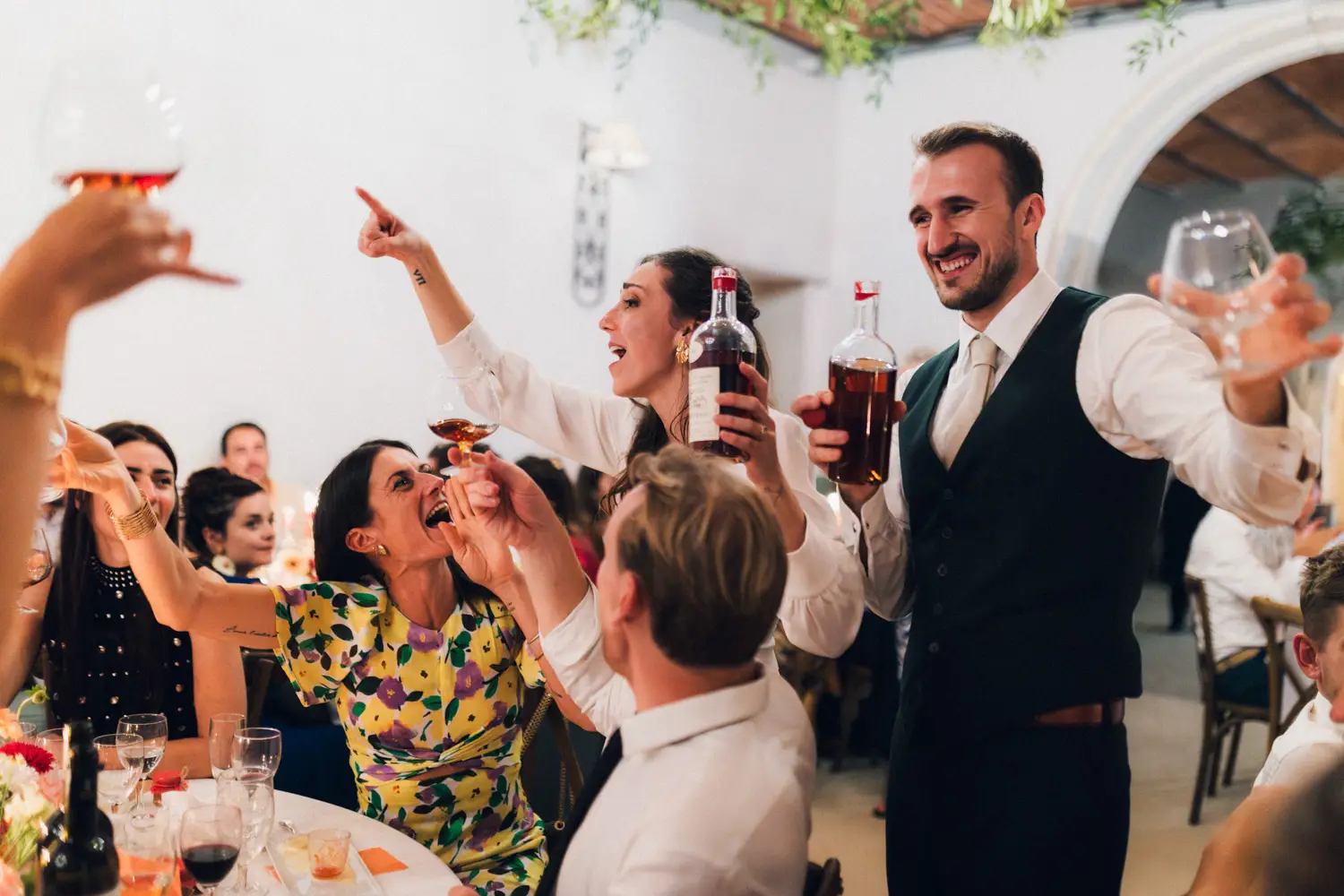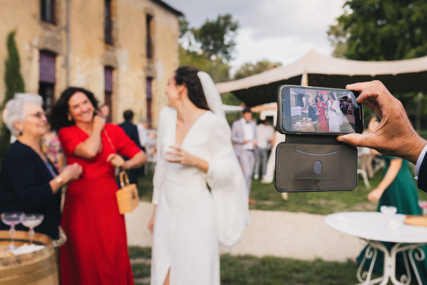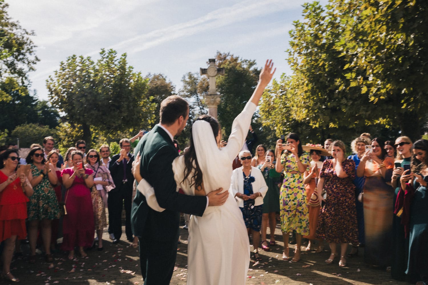 De retour au château de Campet pour faire la fête, et après quelques photos de groupe, Coline et Julien ouvrent le vin d’honneur en trinquant avec leurs verres de cocktail. Car ils se sont fait un petit plaisir en faisant intervenir sur leur mariage Hugo et Joana, alias HUG Cocktail : un adorable duo qui prépare des cocktails délicieux pour vos vins d’honneur et vos soirées ! (spoiler : les invités ont tellement aimé qu’ils ont dévalisé leur stock)
