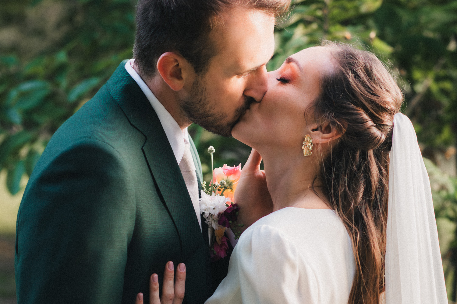 Avant que la nuit ne tombe, nous nous éclipsons quelques minutes pour faire quelques photos de couple. Cette séance couple était un peu la définition de la séance parfaite : deux amoureux en symbiose, une lumière incroyable, un timing idéal… Bref, nous avons pu prendre le temps de réaliser de magnifiques photos de couple sans empiéter trop longtemps sur la fête !
