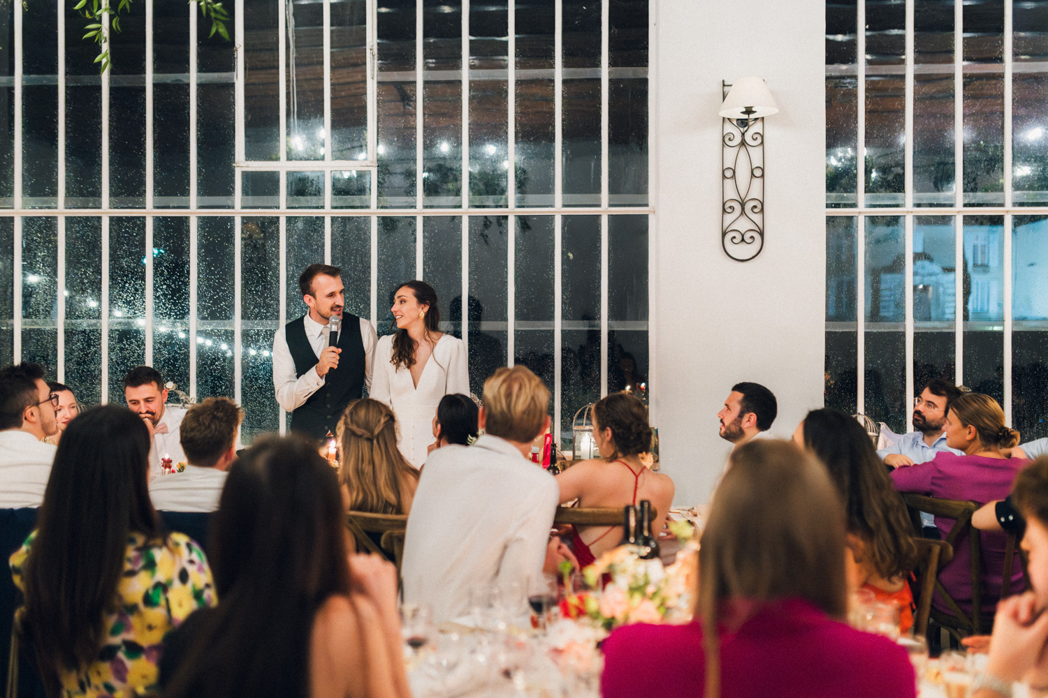 Il a quand même bien fallu passer à table (à 22h passée si mes souvenirs sont bons), pour déguster un délicieux repas cuisiné par le Moulin de Poustagnacq, entrecoupé de discours réalisés par les témoins de Coline et Julien. Tout le monde a ri, pleuré, souri à s’en décrocher la mâchoire pendant cette soirée, avant de se jeter à corps perdu sur la piste danse. Un bel orage d’été grondait dehors.